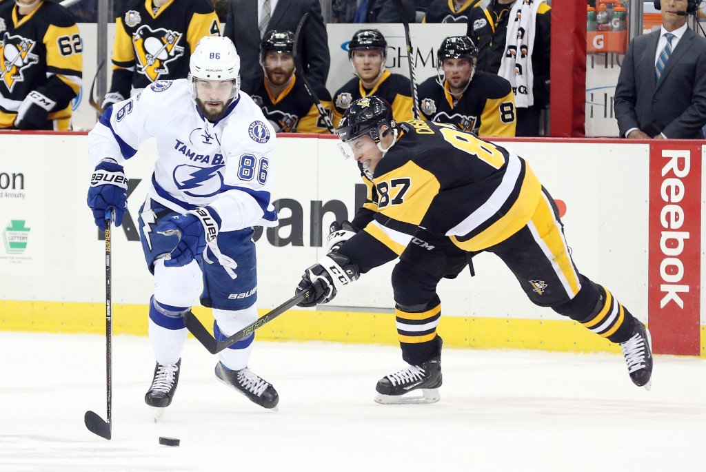 Mar 3, 2017; Pittsburgh, PA, USA; Tampa Bay Lightning right wing Nikita Kucherov (86) chases the puck against Pittsburgh Penguins center Sidney Crosby (87) during the second period at the PPG PAINTS Arena. The Penguins won 5-2. Mandatory Credit: Charles LeClaire-USA TODAY SportsThe Lightning and Penguins clash on Saturday afternoon hockeyThe Saturday odds favor the Bolts by a slim margin on the roadRead below for Lightning vs Penguins prediction, odds and picks